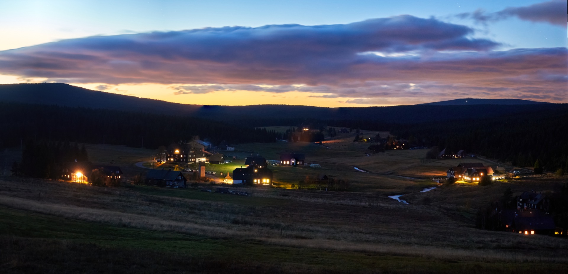 Na Jizerku jsem tento rok jezdil často. Na focení noční oblohy je to tady skvělé. Mám tu osadu rád a nafotil jsem tento rok pár panoramat, přičemž většinu z nich už po setmění, stejně jako toto.