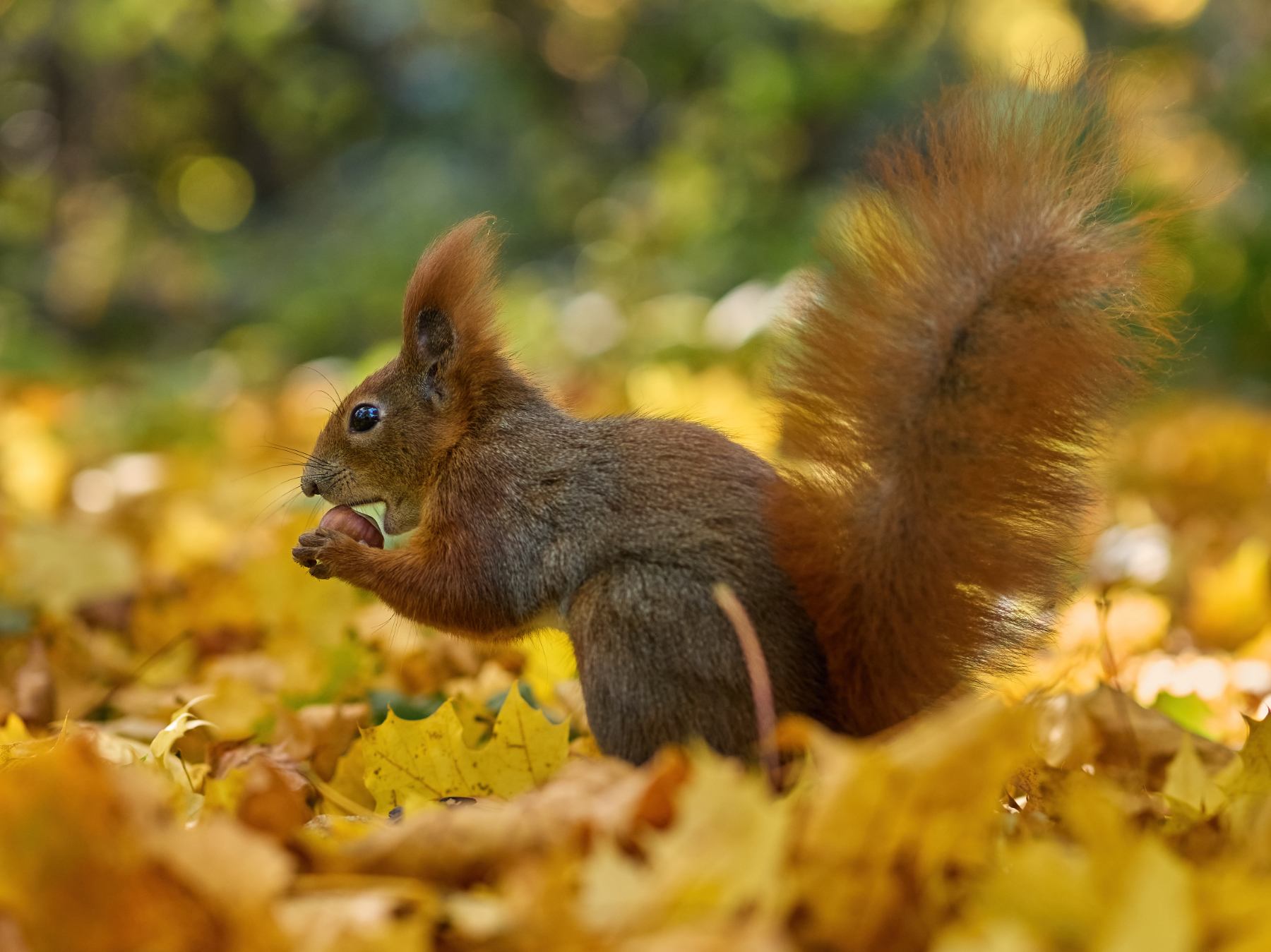 Na konci října jsem taky vyrazil na Štěpánku za veverkami. V podzimním listí jim to sluší nejvíc. Tato fotka je focená na objektiv Olympus 45mm f 1,2, který je ostrý jako břitva.