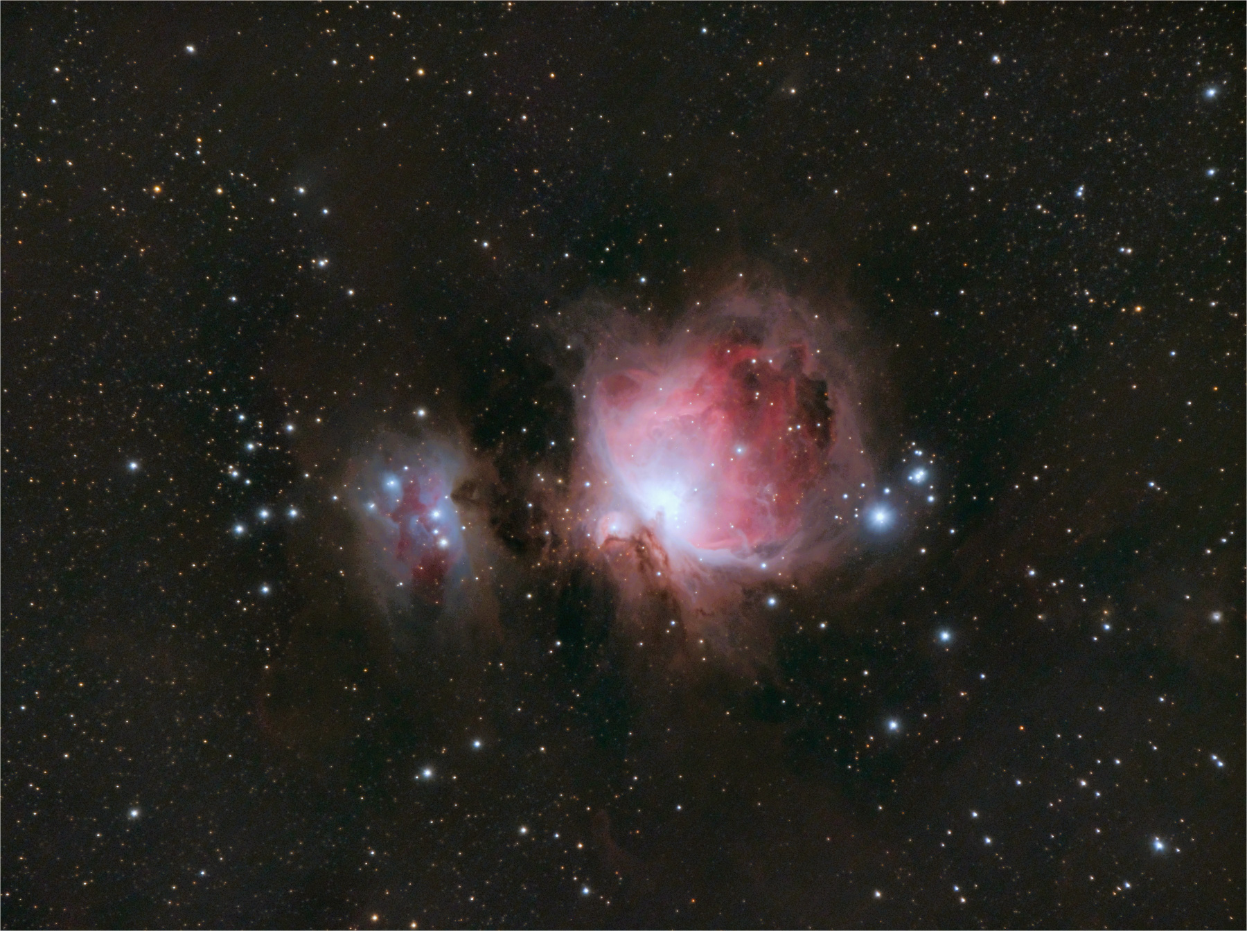 Pak jsem začal zkoušet i focení "hlubšího vesmíru". Na konci roku jsem si vysnil vyfotit asi nejznámější mlhovinu M42 v souhvězdí orion. Padlo na ni 300 fotek o 30s, tedy celková expozice byla 2,5 hod. S postprocesem stále bojuju, ale na první pokus to snad není tak špatné.